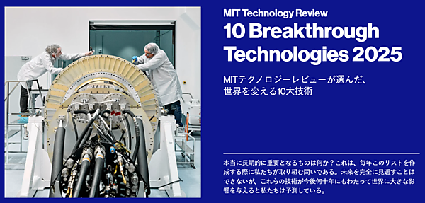 これと似たものにMITテクノロジーレビュー(MITTR)の「10 Breakthrough Technologies 2025」(世界を変える10大技術)があります。MITTRが選んだ世界を変える10大技術について紹介している特集記事で、2001年から毎年発表されています。