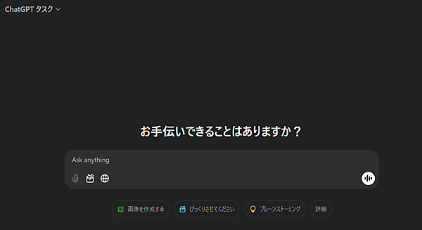 すると、モデル名の表示が「ChatGPTタスク」に変わります。これで準備は完了です。