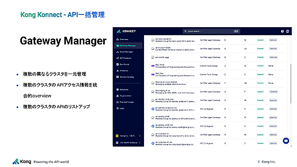 複数のAPI Gatewayを管理するのは容易ではありません。そこで登場するのが「Gateway Manager」です。この機能は、複数の分散環境においても一元的な管理を可能にし、統一された操作体験を提供します。