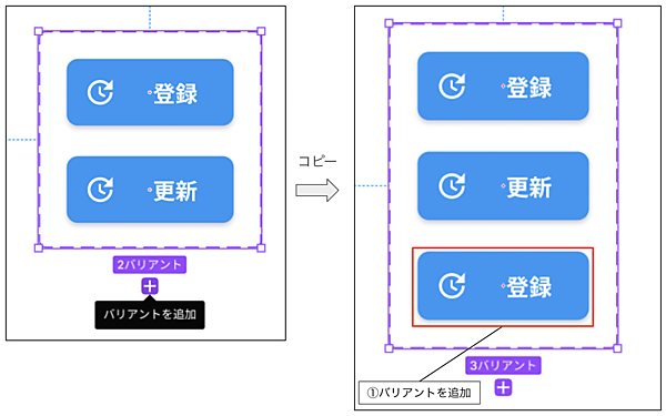 バリアントグループのどれか(ここでは「登録バリアント」)を選び、コピーしてインスタンスを追加してください。