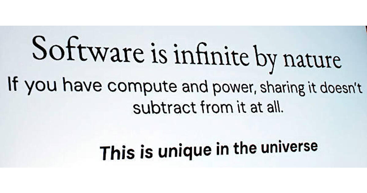 ここでソフトウェアが他の製品と極端に異なるのは、ソフトウェアがどれだけコピーされても元の価値が減ることはないことであると説明。この「宇宙の中でも特異である」というのは良いキャッチコピーだろう。