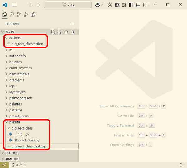 ・サンプルスクリプト「krita」→「pykrita」→「dlg_rect_class」→「__init__.py」from .dlg_rect_class import RectPlugin