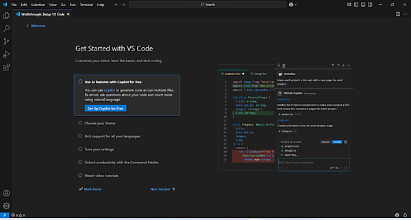 $ code.これでVS Codeの準備が整いました。次は、WSLやDockerとの連携を進めていきましょう。