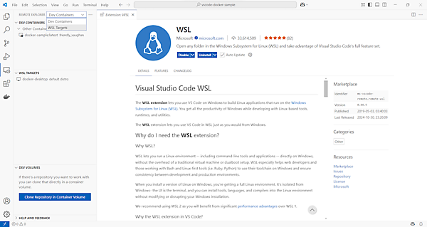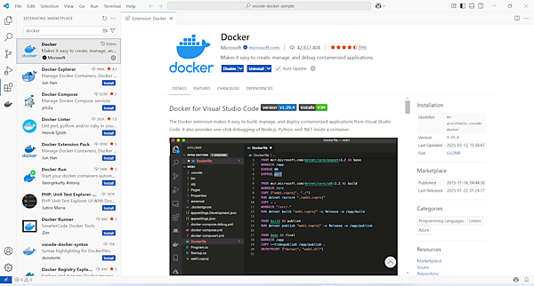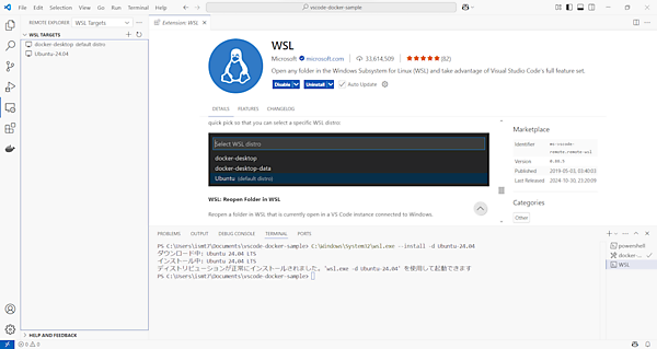 例えば、Docker関連の開発をする場合は、「Docker」拡張機能を導入するとコンテナの管理やDockerfileの補完が可能になります。また、WSLを活用するなら「WSL」拡張機能を入れることで、シームレスにWSL環境で開発できるようになります。