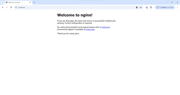 起動しているコンテナが確認できたら、Webブラウザでhttp://localhostにアクセスして、Nginxのデフォルトページが表示されることを確認します。