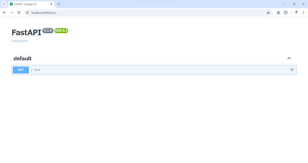 イメージを右クリックし、「Run」を選択してコンテナを起動すると、コンテナセクションに起動したコンテナが表示されます。Webブラウザでhttp://localhost:8000/docsにアクセスするとFastAPIのデフォルトページが表示されることを確認します。