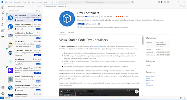 Dev Containersは、Dockerコンテナ上にリモート開発環境を立ち上げてくれるだけのツールではなく、設定ファイル(.devcontaienrs)を使ってコンテナ内の環境設定や拡張機能のインストールを自動化するなど、開発環境の構築を効率化する機能も備わっています。