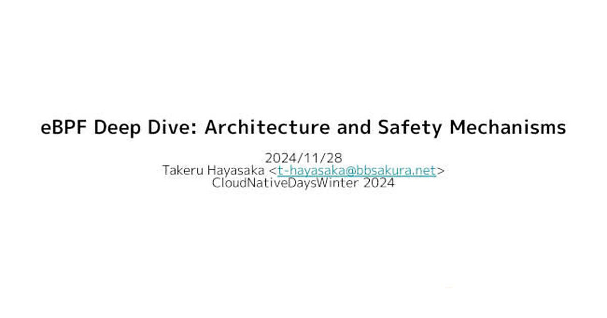 CloudNative Days Winter 2024において、さくらインターネット株式会社の早坂彪流氏が「eBPF Deep Dive: Architecture and Safety Mechanisms」と題したセッションを行い、eBPFの基礎から実践的な活用方法、安全性を担保する仕組みまでを詳しく解説した。Linuxカーネルの拡張を動的に実現し、オブザーバビリティ、セキュリティ、ネットワークといった分野での活用が進むeBPFは、なぜこれほどまでにクラウドネイティブの世界で注目されているのか。その仕組みと可能性について、eBPFの歴史的背景から技術的アーキテクチャ、具体的な実装方法を紹介した。