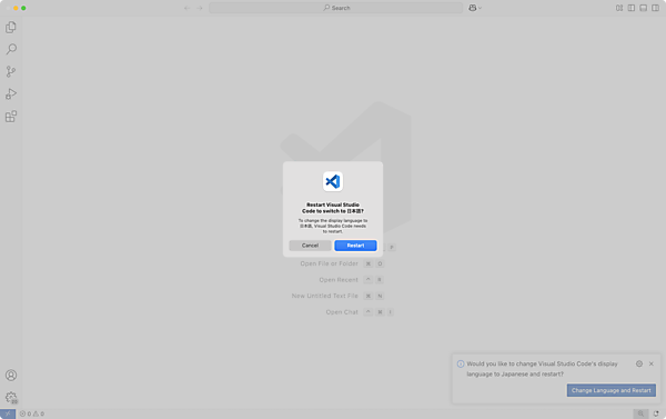 言語の切り替えを有効にする際には、VS Codeを再起動する必要があります。