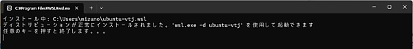 「defaultName」はディストリビューションの名前です。ここでは「ubutnu-vtj」としていますが、任意の名前に変更してください。