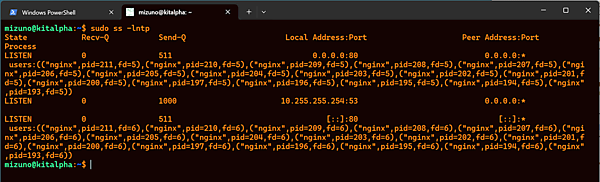今回は、ルートファイルシステム構築時にmmdebstrapでnginxパッケージを追加インストールしています。確認してみましょう。カスタムディストリビューションが起動したら「ss -ltrp」コマンドをroot権限で実行してみてください。