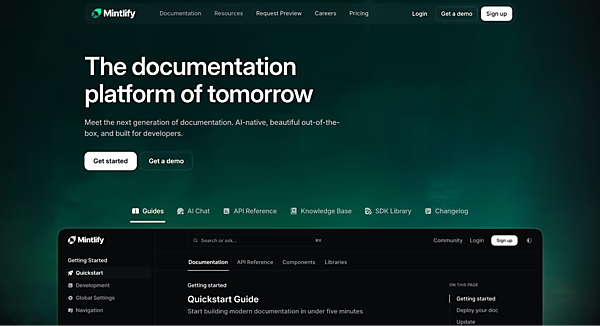 「Mintlify」はドキュメントをLLMで生成(提案ベース)するサービスです。APIリファレンスやナレッジベース、SDKライブラリ、ChangeLogといったドキュメントに対応しています。また、ドキュメントに基づいたチャットボットも提供します。