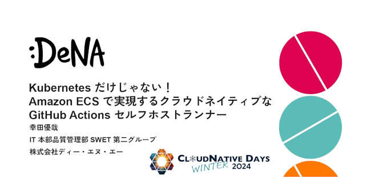 CloudNative Days Winter 2024において、DeNAの幸田優哉氏が「Kubernetesだけじゃない! Amazon ECSで実現するクラウドネイティブなGitHub Actionsセルフホストランナー」と題し、全社向けのセルフホストランナーを構築・運用した事例を紹介した。なぜKubernetesではなくECSを選択したのか。その技術的背景や運用上のメリット、課題について、実際の事例を交えながら説明した。