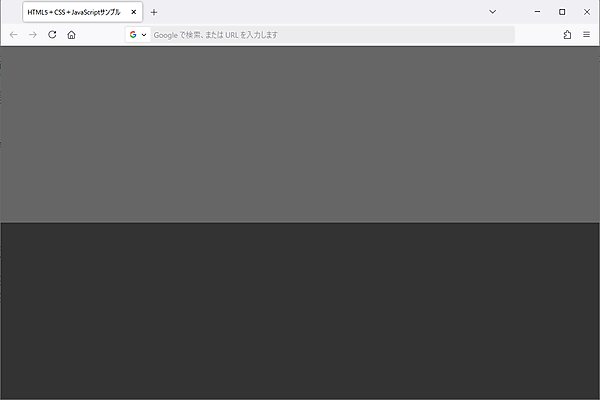 <script>~</script>タグでJavaScriptをコーディングします。document.querySelector("#upper")でIDが"#upper"のセレクタを取得し、ライトグレーの背景色にセットします。IDが"#lower"のセレクタを取得し、ダークグレーの背景色をセットします。
