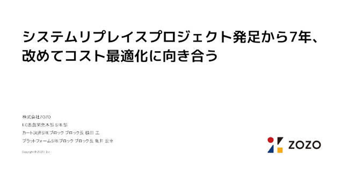 CloudNative Days Winter 2024において、株式会社ZOZOのEC基盤開発本部SRE部から横田拓海氏と亀井宏幸氏が登壇し、「システムリプレイスプロジェクト発足から7年、改めてコスト最適化に向き合う」と題した講演を行った。2017年から進めてきたZOZOTOWNのクラウドリプレイスの取り組みと、安定稼働・開発生産性・システム稼働コストのバランスをいかに保ち続けていくか、その中でとくに課題となってきたコスト最適化について詳しく紹介した。