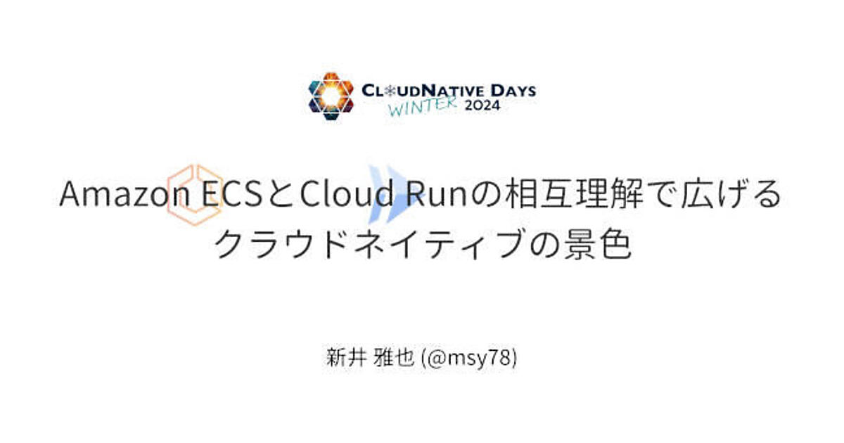 CloudNative Days Winter 2024において、「Amazon ECSとCloud Runの相互理解で広げるクラウドネイティブの景色」と題するセッションが開催された。登壇者は株式会社Synspectiveの新井雅也氏。AWSとGoogle Cloudの両方に精通した氏が、自身の知見をもとに両サービスの設計思想や技術的特徴を比較し、参加者に相互理解を促すものであった。既存の知識を活かし、もう一方を学ぶことでクラウドネイティブエンジニアとして成長するための具体的なヒントが示された。