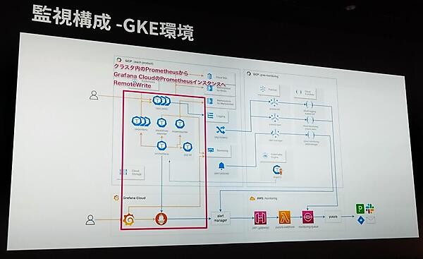 また、監視対象となるシステムの構成についても、3つのタイプをそれぞれ紹介。特に、GKE上のコンテナークラスターからGrafana Cloudへ連携する仕組みについて詳しく解説された。