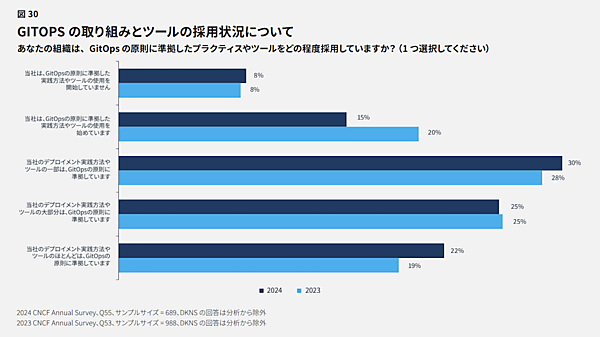 また、インフラストラクチャの自動化手法であるGitOpsは、この原則に基づくプラクティスやツールの採用が進んでおり、多くの組織がその実践を取り入れています。