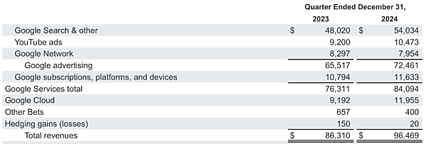 【出典】「Alphabet Announces Fourth Quarter 2024 and Fiscal Year Results」(Alphabet 2025年2月4日)
