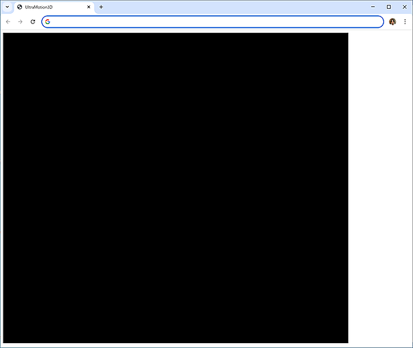 <canvas>タグが3Dを描画する矩形です。その背景色を黒色に設定すると、図3のように<canvas>タグ全体が真っ黒になります。次のサンプルコード「lib」→「UltraMotion3D.js」のように、背景色は色テクスチャに塗ります。それを<canvas>タグのビューに描いているわけです。