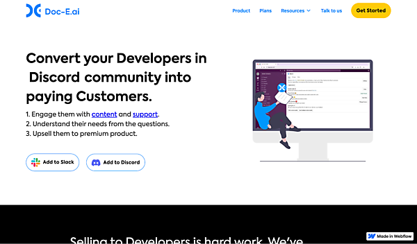 DevRelに特化したものとしては「Doc-E.ai」があります。Doc-EはSlackなどのコミュニケーションツールから情報を抽出し、技術コンテンツに変換するサービスです。ユーザーのペインポイントとその解決策をコンテンツにすることで、他の開発者にとって有益な情報を提供します。