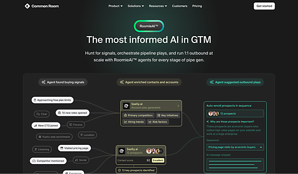 コミュニティ運用管理を提供するCommon Roomでは、見込み顧客の発見や行動分析において「RoomieAI」というエージェントを提供しています。これまでは運用担当者が行っていた分析を自動化し、さらに見込み顧客に対するアプローチをAIが提案します。