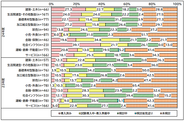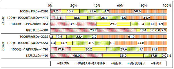 もちろん、従来から指摘されている格差も存在します。売上高1兆円以上の大企業では導入率が約9割に達する一方、中小企業では遅れが見られます。また、情報通信業のような「パイオニア層」と金融・保険業のような「試行錯誤層」とで、業界による導入進捗の濃淡も依然として大きな課題です。