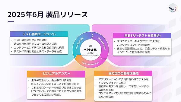 mablは、AIエージェントによる自律型テスト機能の提供開始を発表した。これは、昨年の同社カンファレンス「mabl Experience 2024」でも予告されていたもので、自然言語によるテスト作成、LLMによるテスト失敗原因の分析自動化とテスト自動修復の強化、画像認識と従来のコードベース分析を組み合わせたビジュアルアシストの、4つの柱からなる。Azeri氏は「mablは、テストの作成、実行、メンテナンスのあらゆる工程にエージェント的(Agentic)な機能を組み込んだ。これらのエージェントは、まるでチームに加わった新しいテスターのように開発チームの作業をサポートする」と強調する。