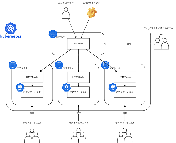 プラットフォームは複数のプロダクトチームの共通基盤として機能するため、マルチテナント構成が必要です。それでは、各テナントをどのように分離するのでしょうか。