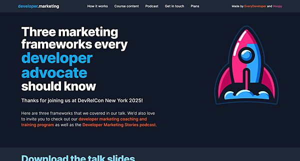 本セッションの内容やスライドは「Developer Marketing frameworks for DevRelCon」で視聴できます