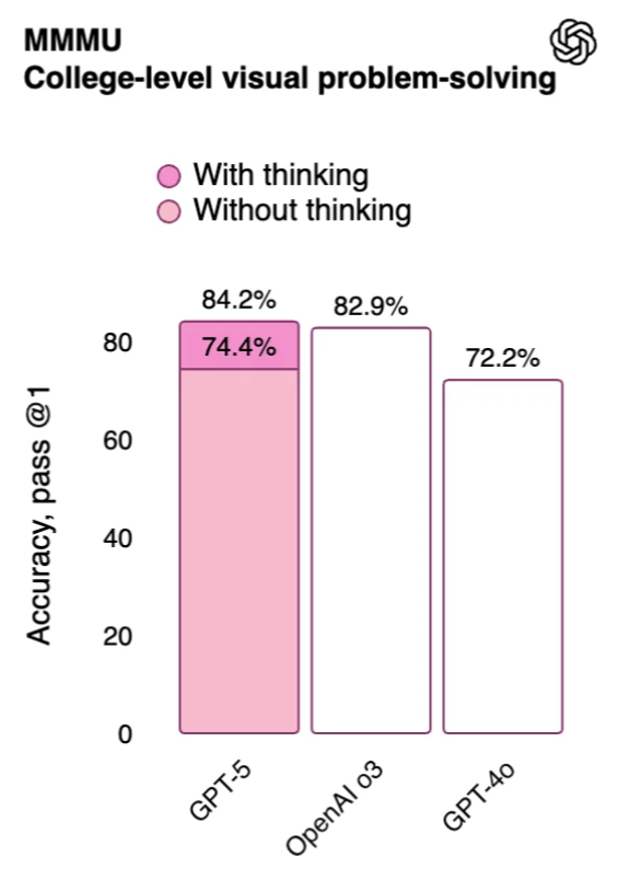 公式ベンチマークによれば、GPT-5は幅広い分野で過去最高水準の精度を記録しました。