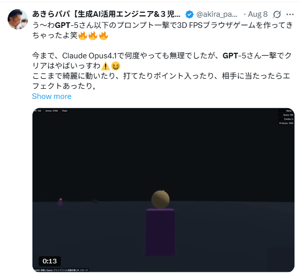 【出典】「X あきらパパ【生成AI活用エンジニア&3児のパパ】」(2025/08/08)