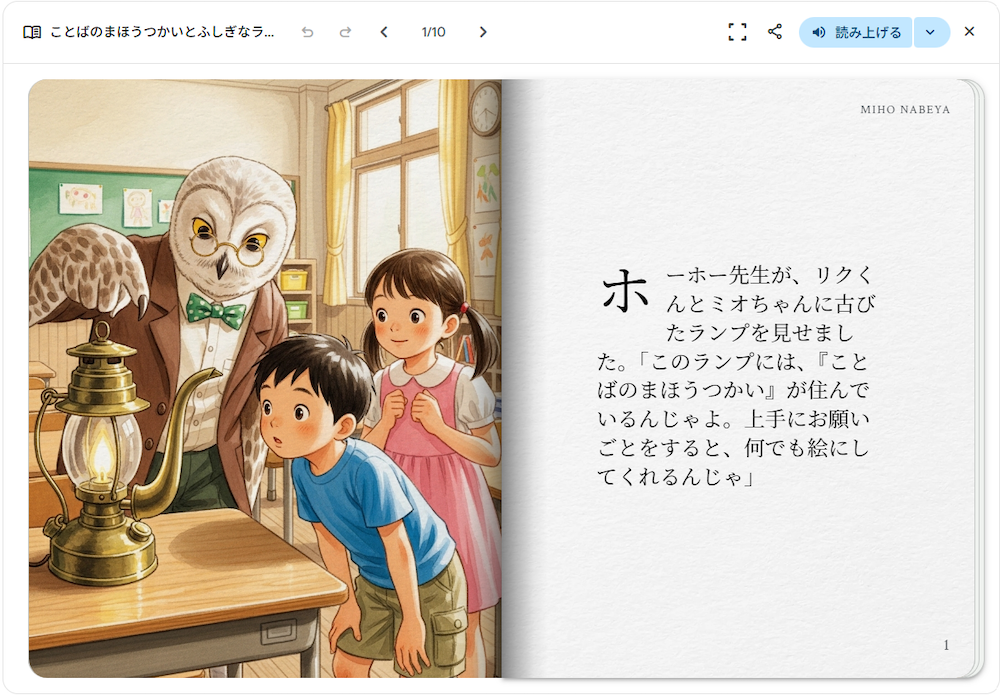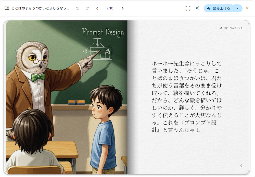 試しにGemini Storybookで絵本を作成してみました。プロンプトは「以下の内容を先生が小学生の生徒に教える絵本を作って。:(以下記事の文章)」のみです。最初の数ページは正直”難しいかな”と思ったのですが...