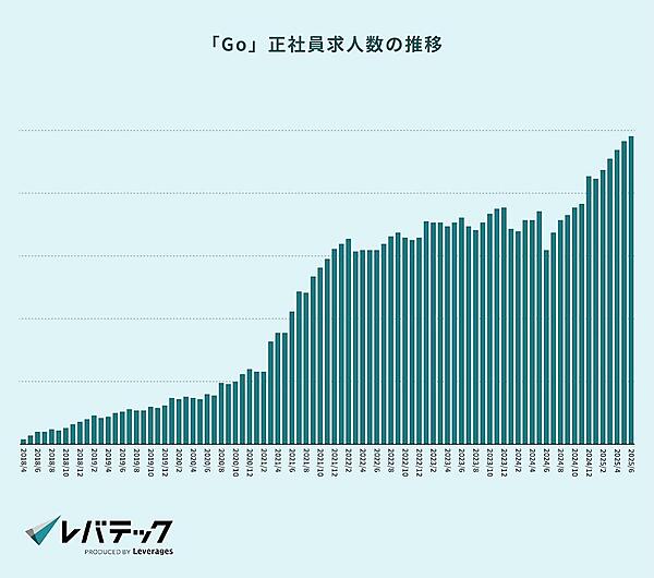 例えば、Go言語は徐々に扱う企業数が増えており、求人数も3年間で1.6倍に増加。同時にGo言語を扱えるエンジニアも増えてきており、教育体制の充実によって企業が求めるスキルレベルが低下するケースもありました。