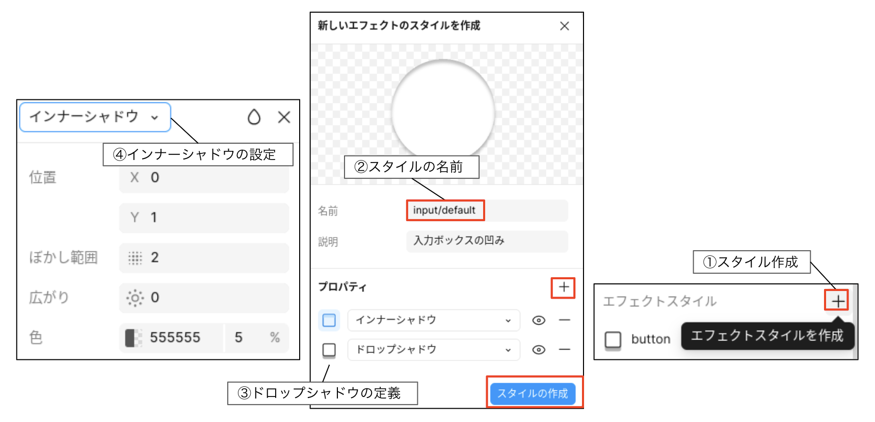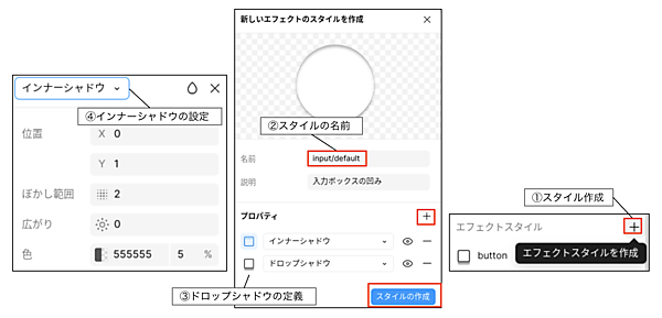 名前は「input/default」とします。 - ドロップシャドウを定義
