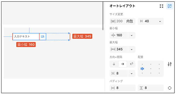 - オートレイアウトで最大値や最小値を設定しておくと、デザインが間延びしたり窮屈になったりすることを防止できる