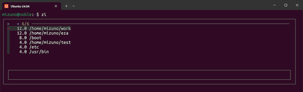 また、ziコマンドでfzfを利用したインタラクティブなディレクトリ選択が可能になります。