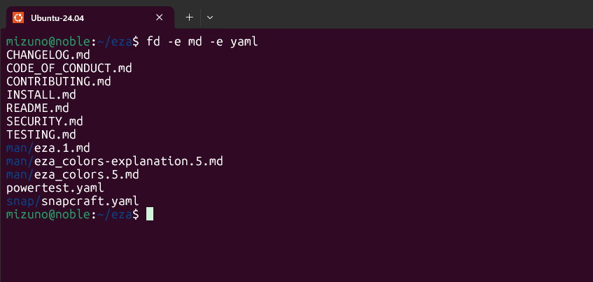 なお、fdもbatと同様に別のパッケージとの競合問題があり、「fdfind」コマンドとしてインストールされます。こちらも以下のようにエイリアスを設定しておくと便利です。