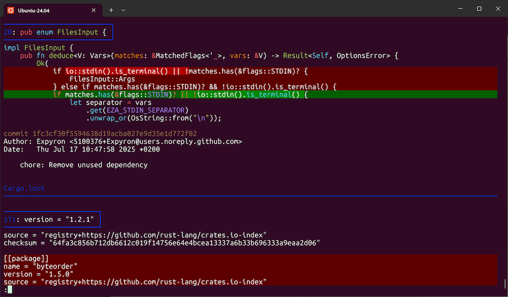 「delta」はdiffの代替コマンドで、特にGit diffに特化した美しい差分表示を提供します。