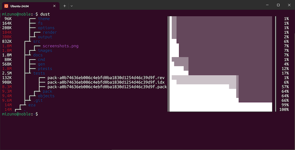 「eza」はlsの代替コマンドで、カラフルな出力、Git統合、ツリー表示などの機能を提供します。もともと「exa」という実装が存在したのですがObsoleteとなり、ezaがその後継となります。