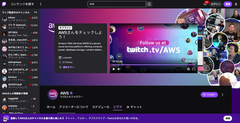 従来であれば、カンファレンスやミートアップでの登壇を通じて製品を知ってもらっていたのですが、オンラインの動画であれば場所や時間を選びません。そうした意味においても、動画コンテンツの重要性は増しています。AWSのTwitchでは11.7万人のフォロワーがいて、毎日いくつもライブ配信を行っています。日本マイクロソフトが開発者向けに配信している「クラウドデベロッパーちゃんねる」は、1.87万人の登録者がいます。こうした独自のチャネルを持つことは、製品認知度の向上はもちろんのこと、新機能の告知や、ユーザーからのフィードバックを得るためにも有効です。