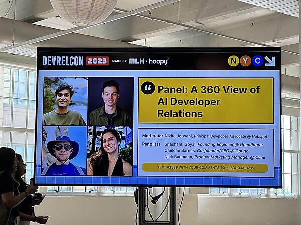 昨今のテクノロジー界隈では、常にAIが話題に上がります。「前回のDevRelCon NY 2025レポート」でもAIに関するセッションが多かったと書きましたが、これはテクノロジー面もありつつ、各社のビジネス面による影響も色濃くあります。多くの企業がAI機能開発に全振りしている状況で、逆にAIに触れなかったら投資家や株主から責められる、という話も聞きました。