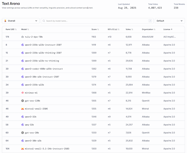 【出典】「Text Arena」(LMArena 2025/08/28)