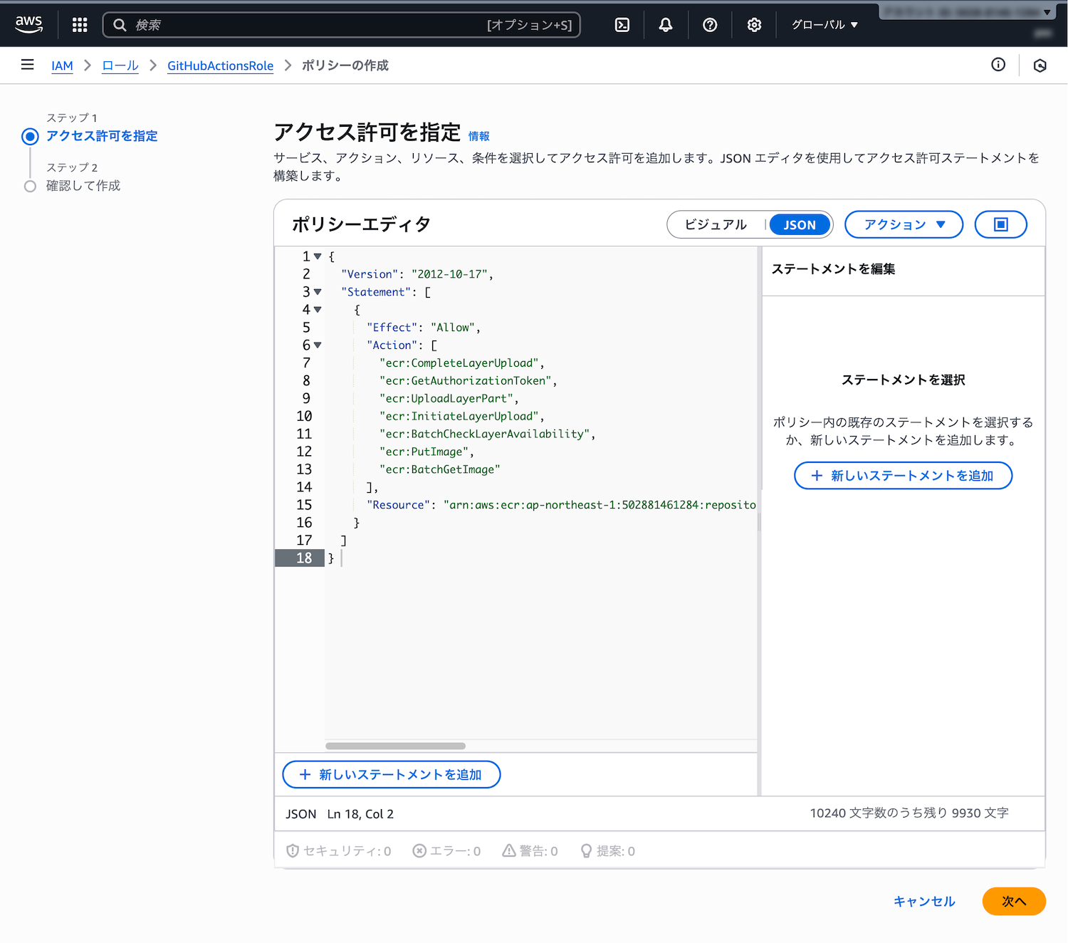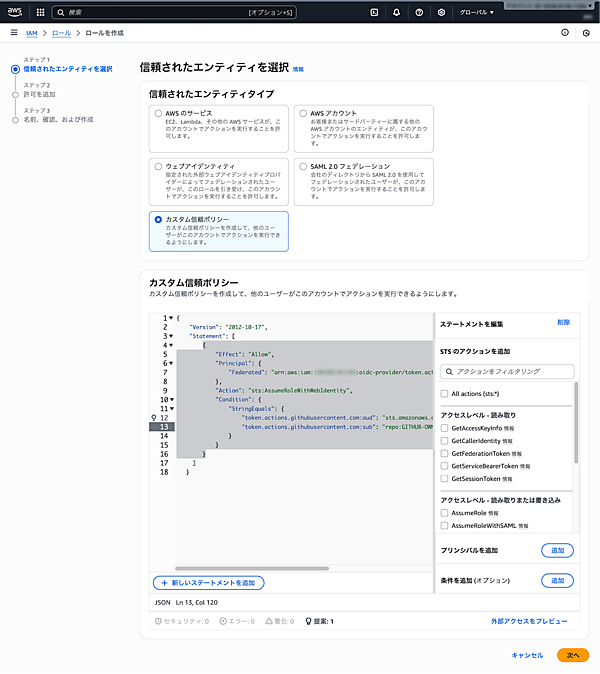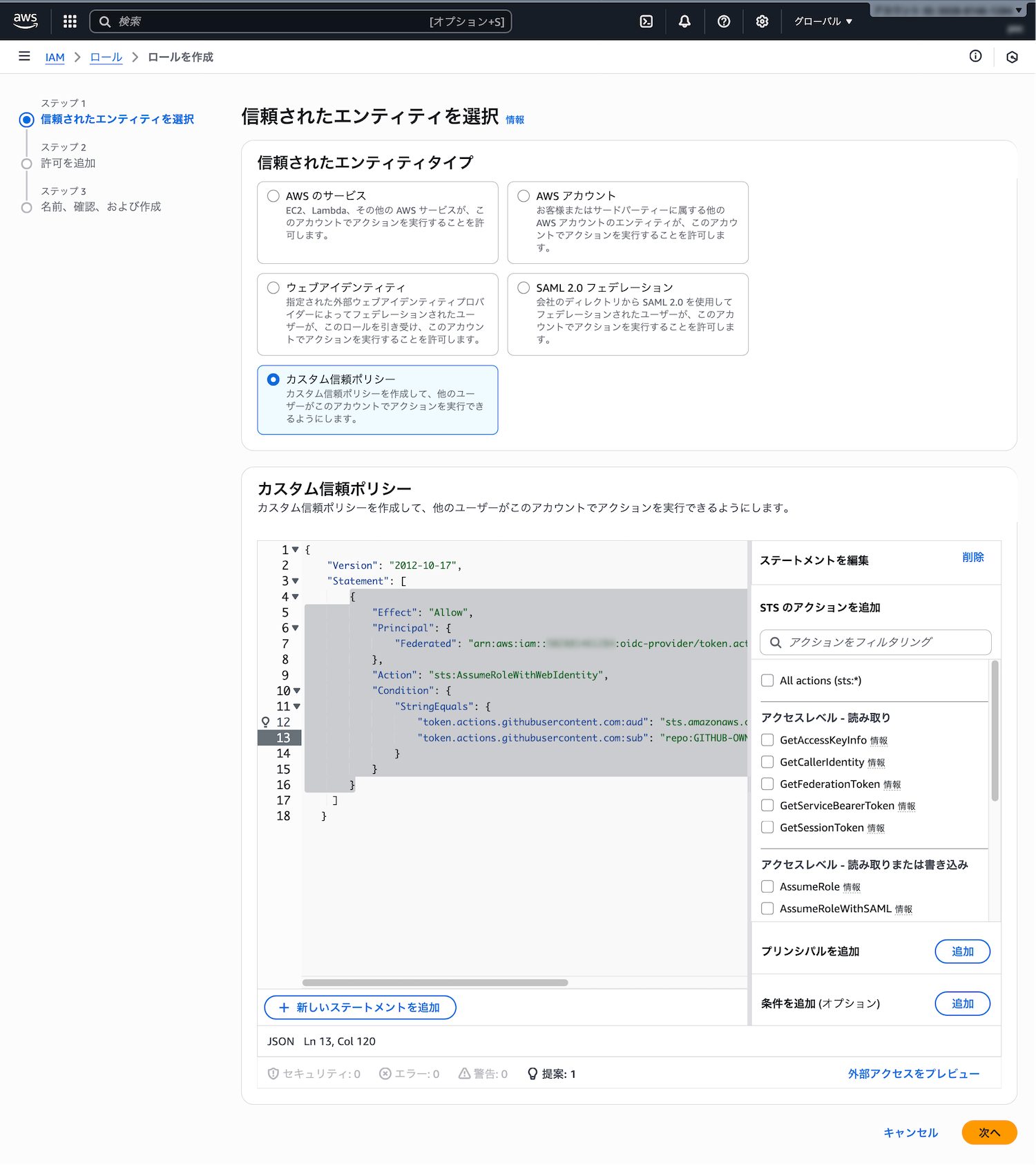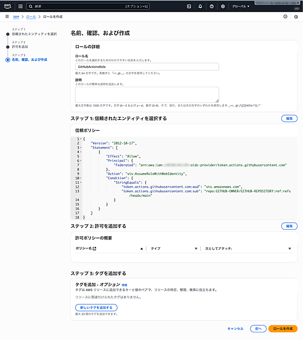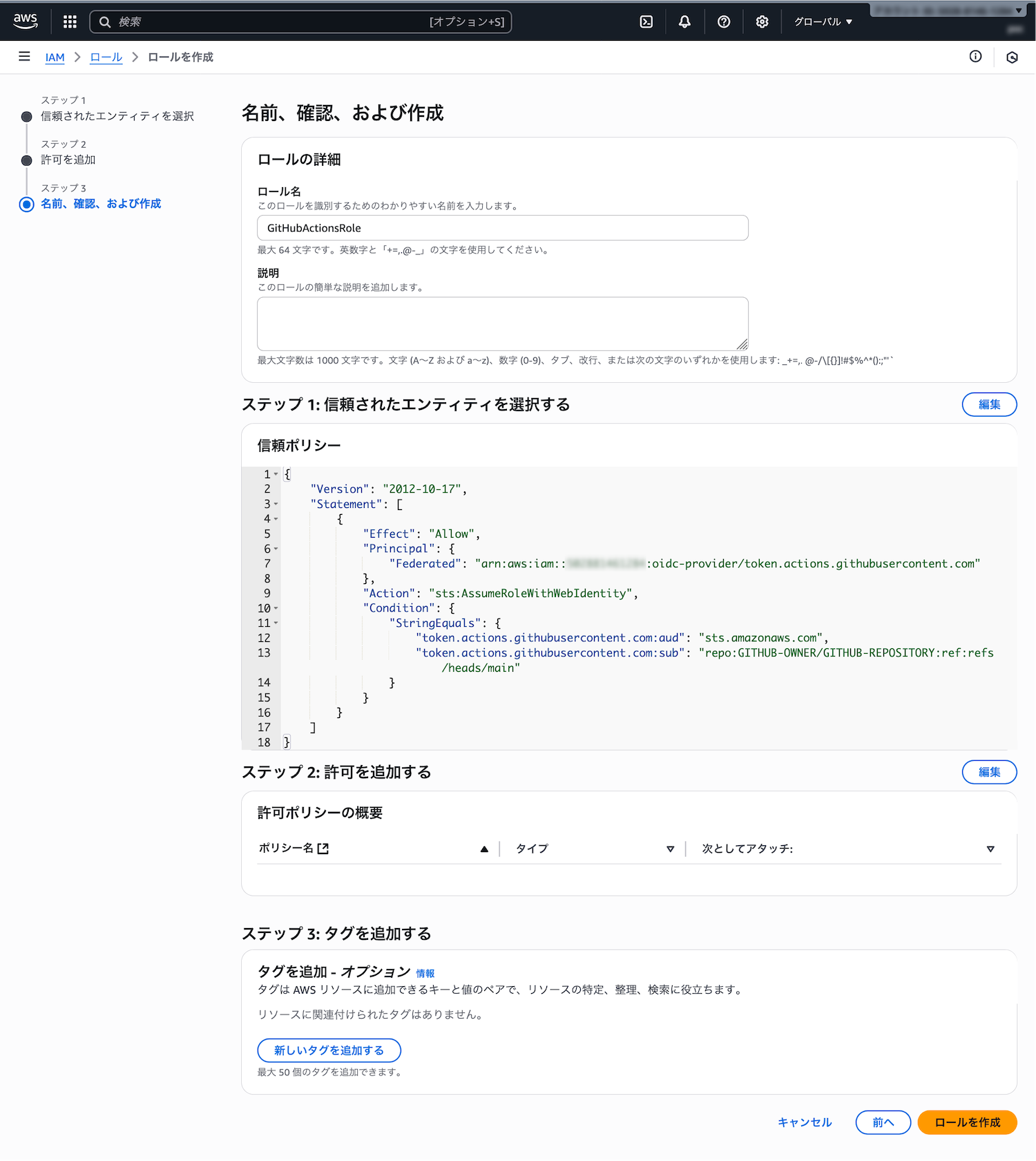 ステップ2: GitHub Actions専用のIAMロールを作成する