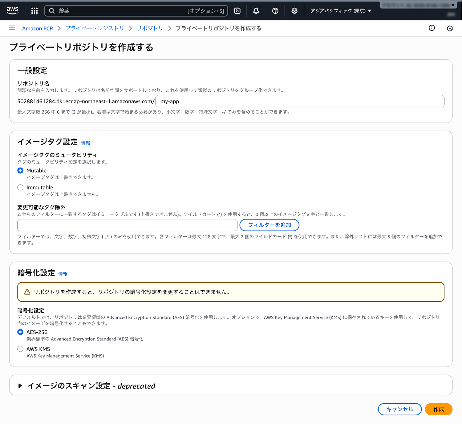 本記事では、東京リージョン(ap-northeast-1)を使用します。