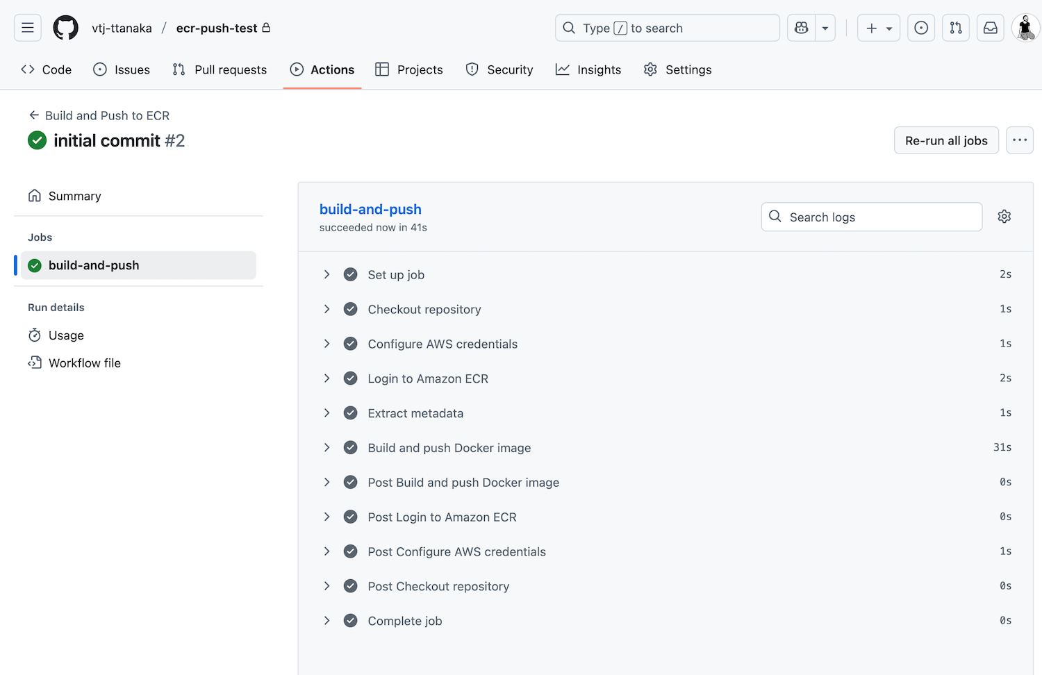 プルリクエストではビルドのみ行い、メインブランチへのプッシュ時のみECRにプッシュします。