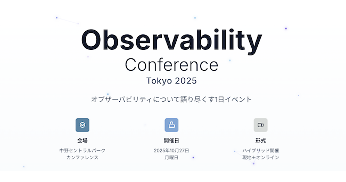 オブザーバビリティに特化した技術カンファレンス「Observability Conference Tokyo 2025」が、2025年10月27日(月)に中野セントラルパーク カンファレンスで開催される。現地・オンラインのハイブリッド形式で、チケット販売が開始されている。参加登録は公式サイトから行える。