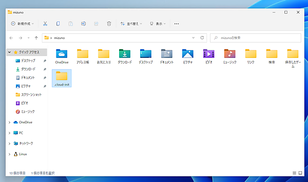 それでは、実際にuser-dataを作成し、WSLのディストリビューションを初期化してみましょう。[Windows]キー+[R]キーを押して「ファイル名を指定して実行」のダイアログを表示します。ここに「%USERPROFILE%」と入力して[Enter]キーを押してください。エクスプローラーで自分のユーザーフォルダが開くので、ここに「.cloud-init」という名前で、新しいフォルダを作成してください。