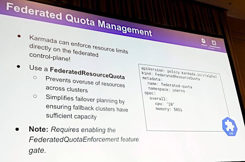 またアプリケーションがノードに要求するメモリー量やプロセッサのタイプなどのクォータも、KarmadaのCRDを利用することでコントロールできることを説明した。