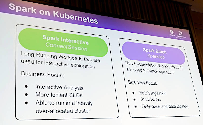 ここからは、Kubernetes上でSparkがリアルタイムとバッチで実装される場合のCRDなどを解説する内容となった。